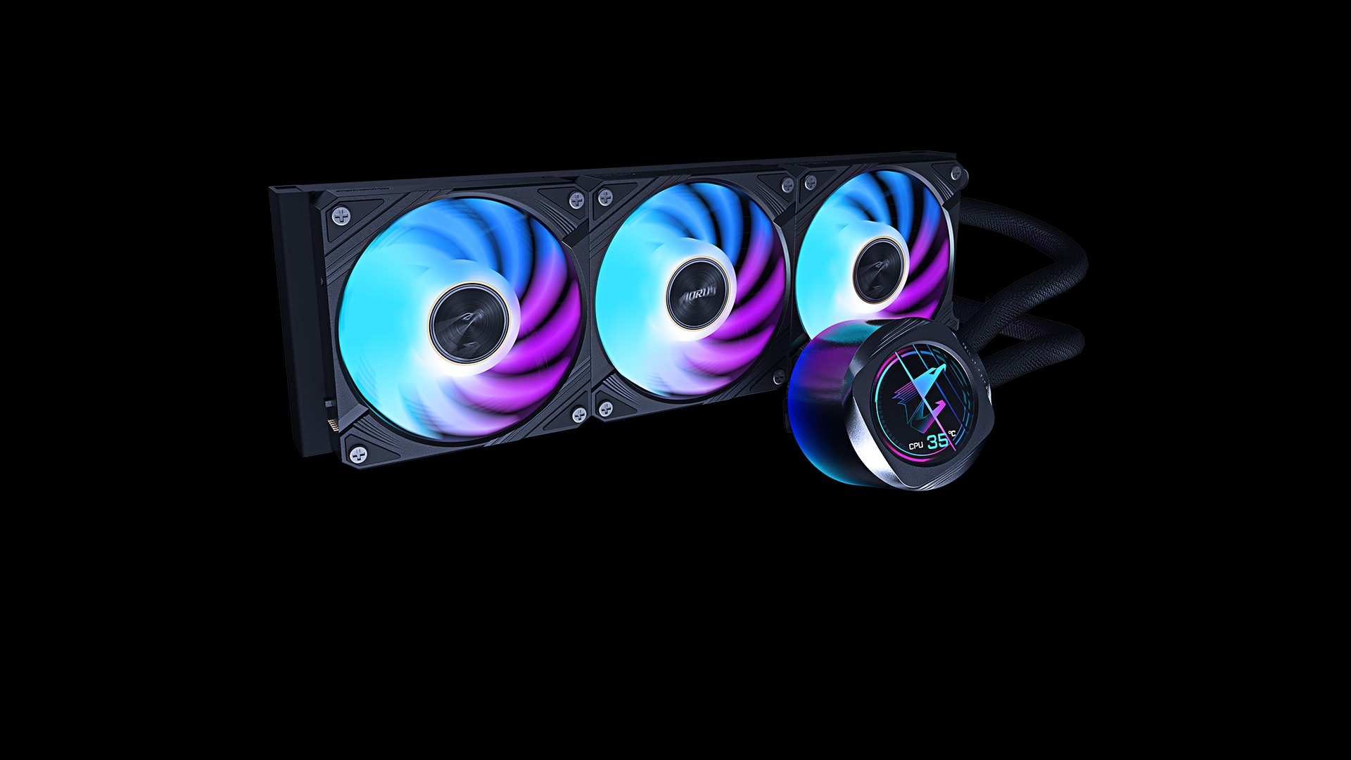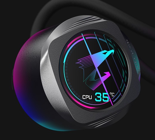 - The water block and fan feature gradient lighting, and the ARGB fan lighting can be synchronized with other AORUS devices through GCC (GIGABYTE Control Center).