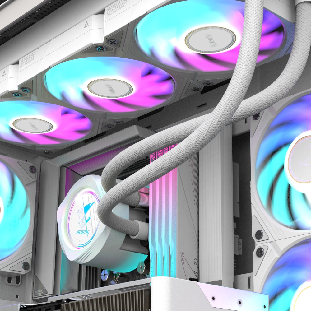 - Supports synchronization with AORUS WATERFORCE X II series & AORUS WATERFORCE II series liquid cooling RGB lighting