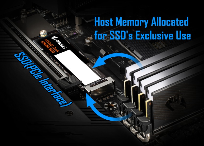 The Host Memory Buffer (HMB) feature utilizes the DMA (Direct Memory Access) of PCI Express to allow SSDs to use some of the DRAM on PC system, instead of requiring the SSD to bring its own DRAM.
