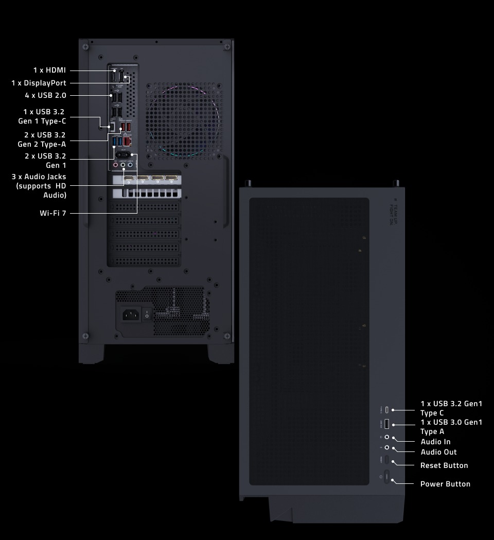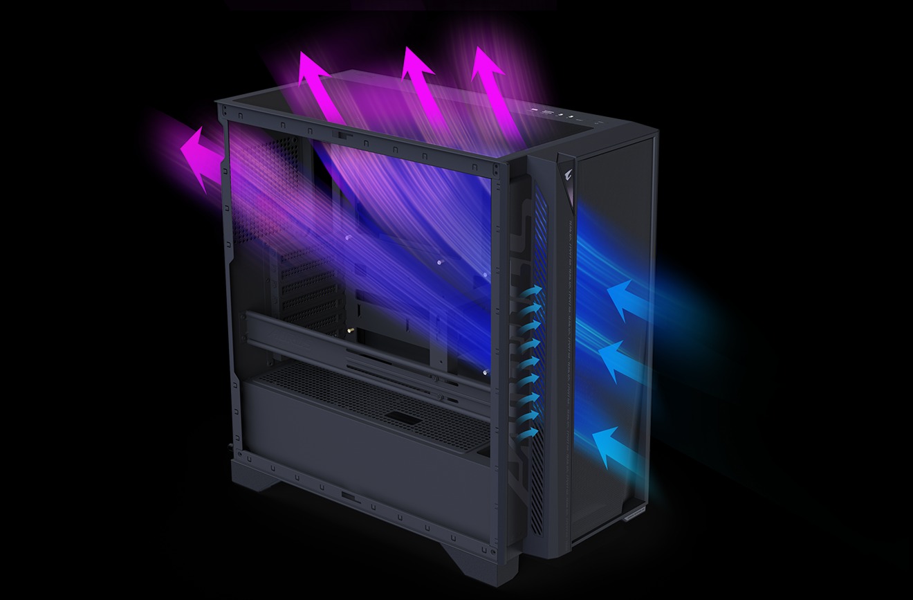 The AORUS PRIME 5 is built to dominate the heat. A quad-fan layout pushes air through a wide mesh front, while a 240mm AIO liquid cooler keeps the CPU ice-cold and whisper-quiet, even when the battle gets intense.