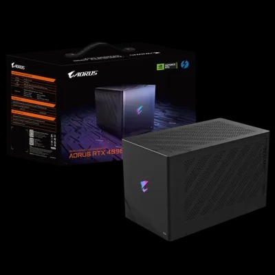 The AORUS RTX 4090 GAMING BOX transforms an ultrabook laptop into the ultimate gaming rig, delivering incredible performance for real-time ray tracing and graphics-intensive games. A network chip that allows you to connect to a wired network is built into the GAMING BOX. You don’t have to worry about transmission interference during the game. Install the GIGABYTE CONTROL CENTER to adjust the RGB lighting and performance for your preference.