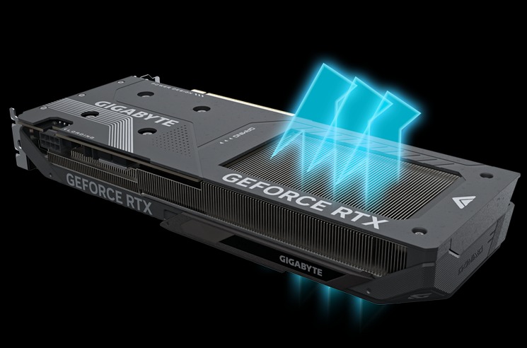 The WINDFORCE cooling system delivers exceptional thermal performance through a combination of cutting-edge technologies. It includes server-grade thermal conductive gel, innovative alternating-rotation Hawk fans, composite copper heat pipes, a copper plate, 3D active fans, and a screen cooling system.