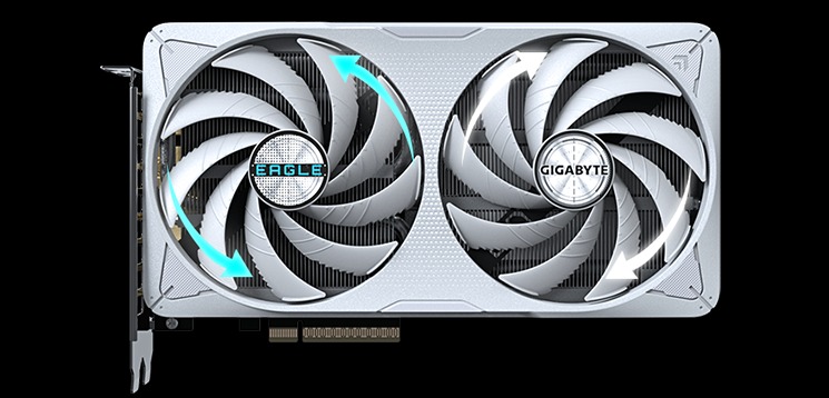 The WINDFORCE cooling system delivers exceptional thermal performance through a combination of cutting-edge technologies. It features server-grade thermal conductive gel, innovative Hawk fans with alternate spinning, composite copper heat pipes, copper plate, 3D active fans, and screen cooling.