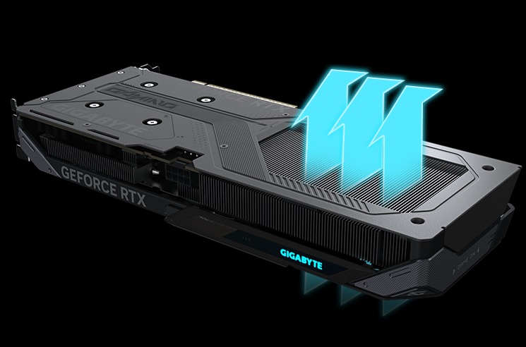 The WINDFORCE cooling system delivers exceptional thermal performance through a combination of cutting-edge technologies. It features server-grade thermal conductive gel, innovative Hawk fans with alternate spinning, composite copper heat pipes, copper plate, 3D active fans, and screen cooling.