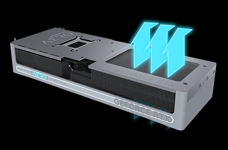 The WINDFORCE cooling system delivers exceptional thermal performance through a combination of cutting-edge technologies. It features server-grade thermal conductive gel, innovative Hawk fans with alternate spinning, composite copper heat pipes, a large copper plate, 3D active fans, and screen cooling.