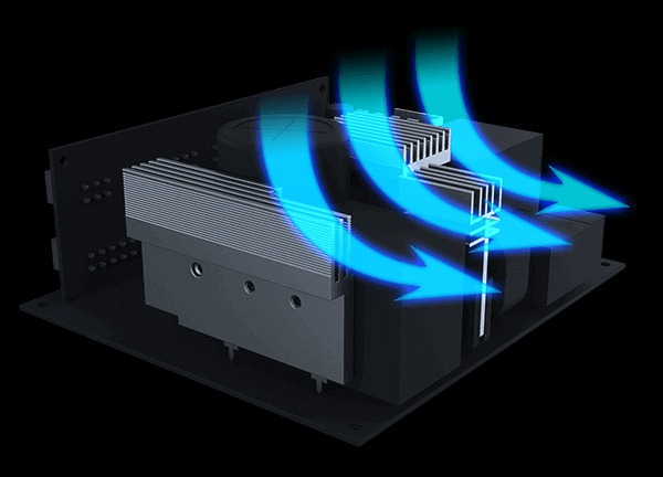 Compared with the standard thermal solution, we have enlarged the heatsink by about 200% or more, and optimized the airflow. The heat dissipation performance is increased by more than 10%, thus prolonging the service life of the components.
